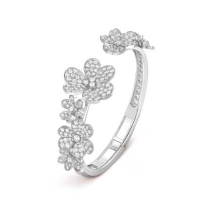 Frivole手镯,7枚花卉主题图案,中号款式, 18K白金, 钻石:  297颗,  5.44 克拉, Front, Jewelry Bracelet_梵克雅宝_Van Cleef & Arpels